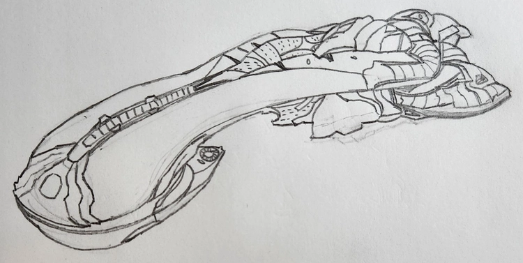 I’ve never taken an art class, so I don’t have or know of any particular drawing techniques. I drew a few sci-fi vehicles growing up, being inspired by stuff I was watching with my dad (e.g. Aliens). When I took HSA 10 “The Art of Critical Making” at Harvey Mudd, I had to draw a sketch every day. I often spent a good 30-60 minutes really fleshing out many of the following sketches, and I think I improved a lot over time.