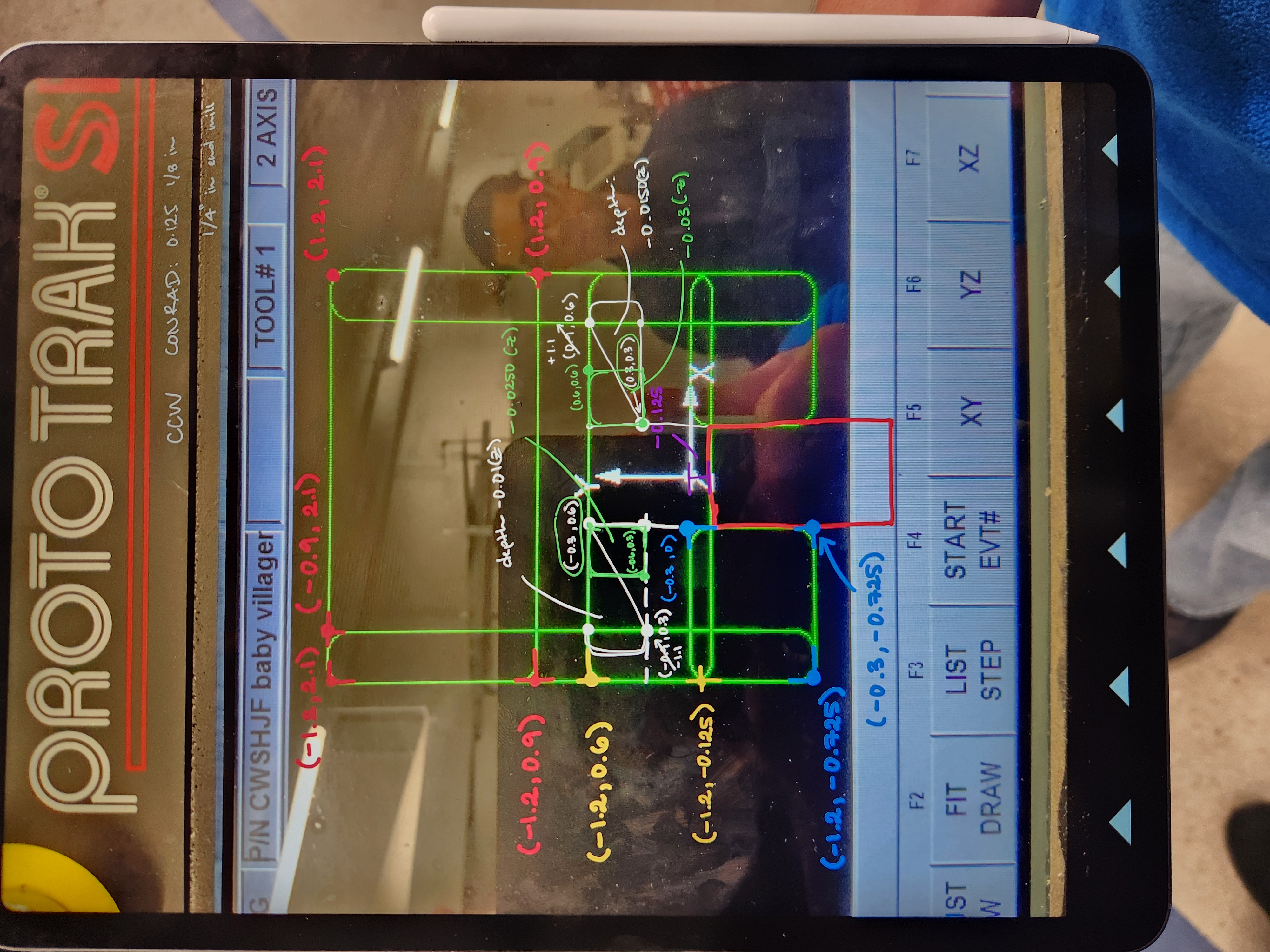 I attended a proctor training workshop where we learned how to program conversational CNC on a ProtoTRAK knee mill. With my fellow “baby” (first-time) proctors Sebastian and Christian, I designed and milled out an aluminum image of a Minecraft Villager. It was fun to do the math to figure out how to achieve the shaping that we wanted, and rewarding when our piece came out obviously better than we could have done by hand.